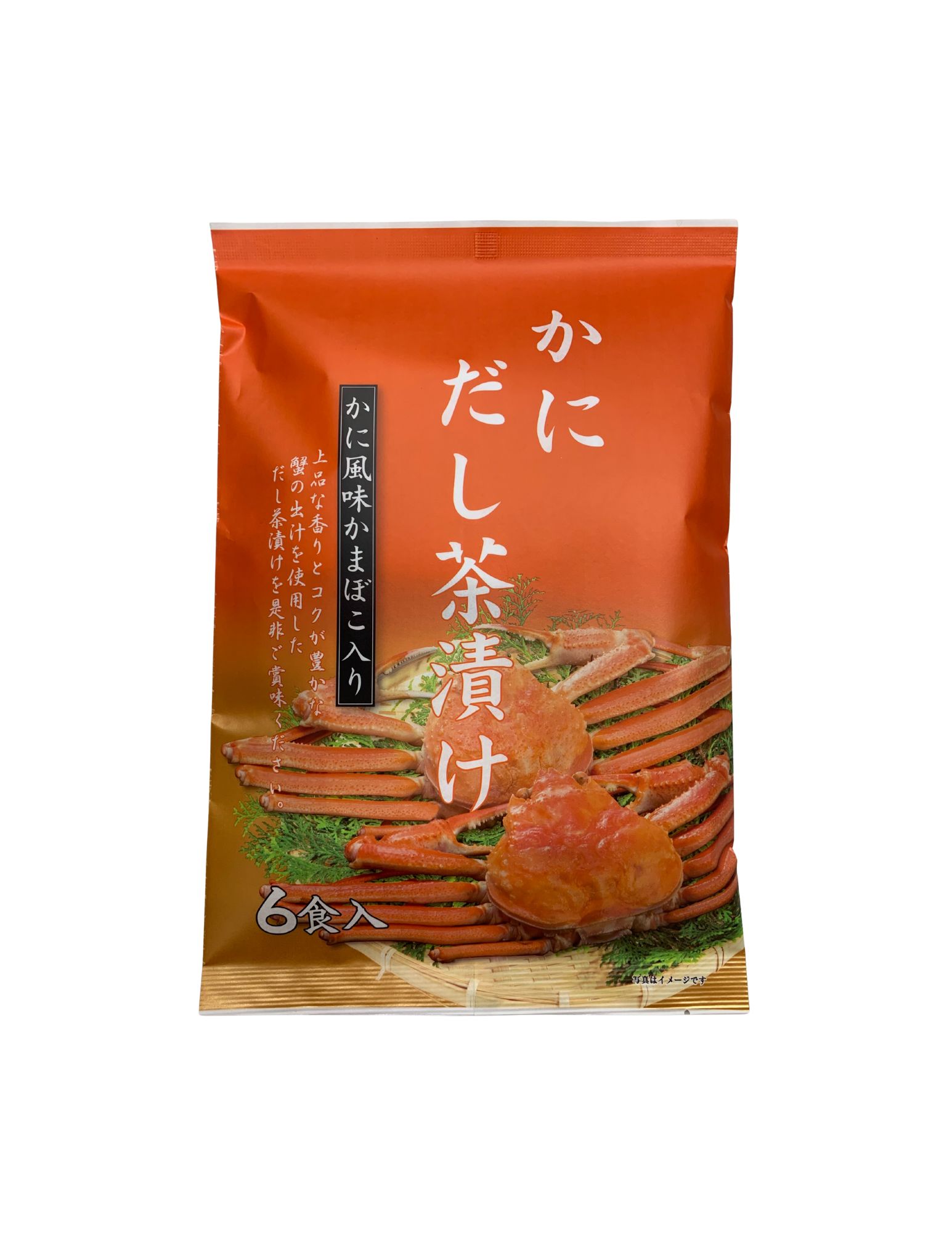 【新商品】かにだし茶漬け 【新商品】かにだし茶漬け 【栄養成分表示(1袋(100g)あたり)】 エネルギー:283kcal たんぱく質:15.4g 脂質:4.3g 炭水化物:45.7g 食塩相当量:30.5g 【アレルギー表示】 本製品工場では小麦・卵・乳成分・えび・かにを含む製品を生産しています。 【商品発送】 お買い上げいただいてから1~7日以内で商品を発送いたします。 ※ゴールデンウィーク、お盆、年末年始などの長期休業期間は、発送業務が停止いたします。 休業期間前後のご注文は、通常よりも商品のお届けまでにお時間をいただく場合がございますので、あらかじめご了承ください。 商品名かにだし茶漬け 販売価格500円(税別) 内容量7g×6食 賞味期限365日
